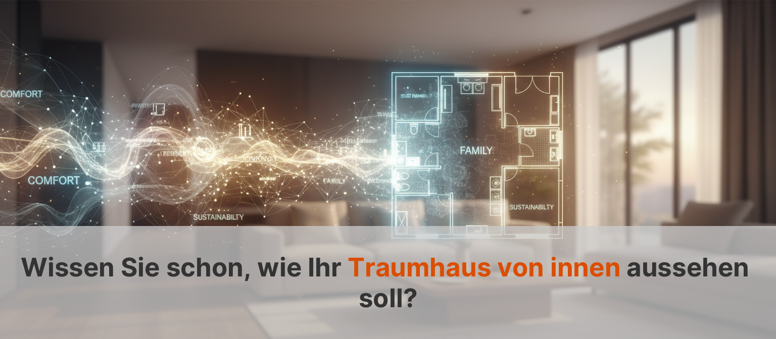 Der Weg zum Traumhaus beginnt oft mit einem Gefühl, aber wie wird daraus ein konkreter Plan, der wirklich zu Ihnen passt? Unser KI-Hausplaner führt mit Ihnen einen intelligenten Dialog über Ihren Lebensstil und übersetzt Ihre Wünsche und Gewohnheiten in einen maßgeschneiderten Grundriss, der sich anfühlt, als wäre er schon immer für Sie gemacht gewesen. So wird aus einer vagen Vorstellung in wenigen Minuten ein intelligenter Entwurf, der die perfekte Basis für Ihr zukünftiges Zuhause bildet.